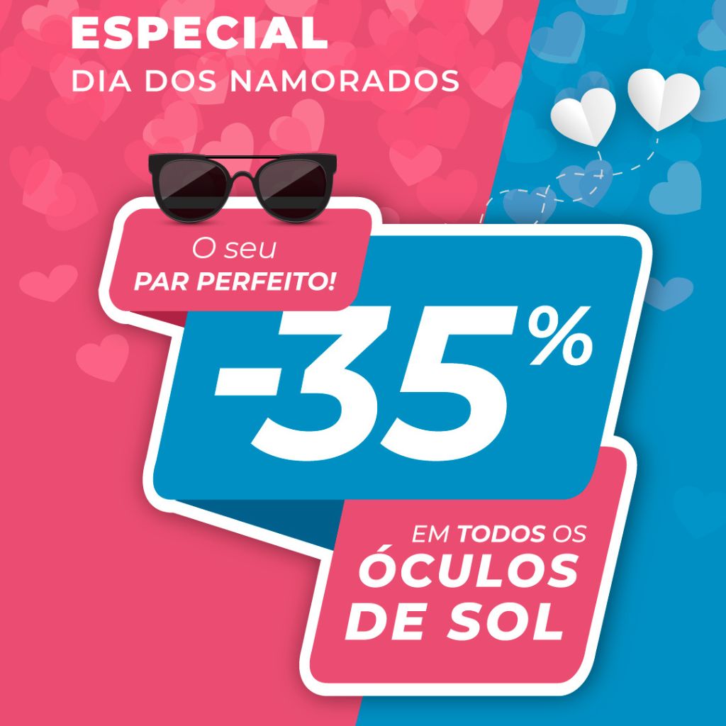 O dia mais romântico do ano está a chegar! E, para assinalar esta data, a Alberto Oculista acaba de lançar mais uma fantástica oportunidade: -35% de desconto direto em todos os óculos de sol!
